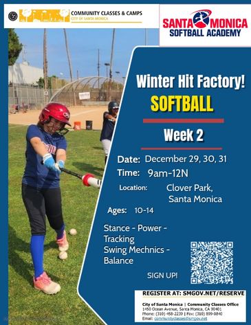 Get ready for WINTER CAMP SESSION 2 at Santa Monica Softball Academy! This camp is designed to keep players moving, learning, and HAVING FUN while leveling up their skills. Each day brings high-energy drills, live hitting, throwing and catching work, base-running, speed and agility challenges, plus focused training for pitchers, catchers
